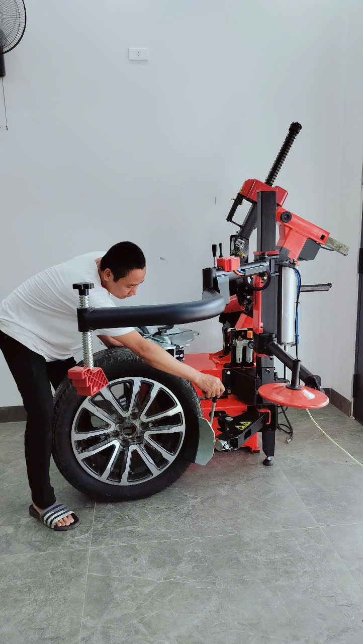 - Với tay hỗ trợ điều khiển bằng khí nén, việc ép mép lốp, móc lốp được thực hiện dễ dàng hơn